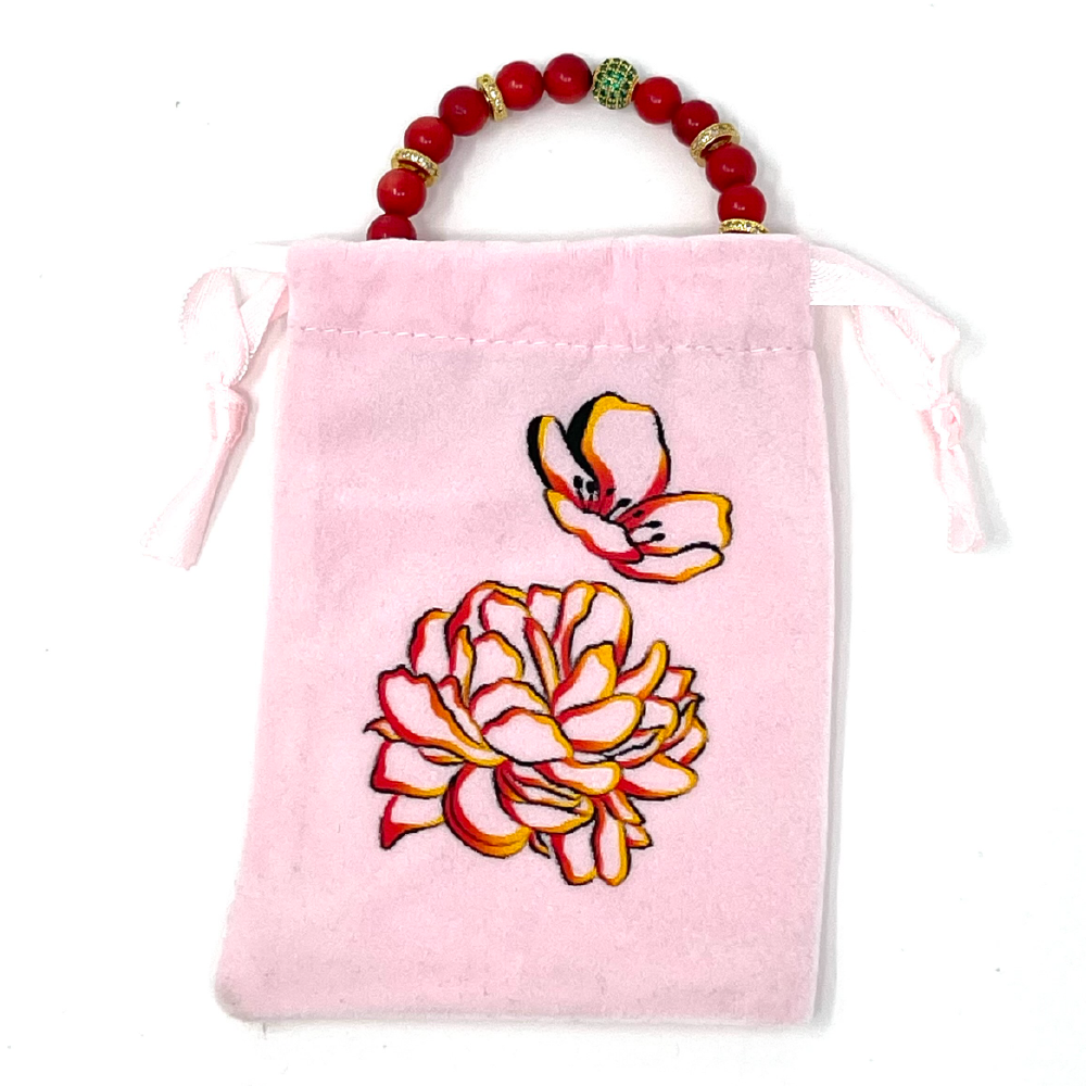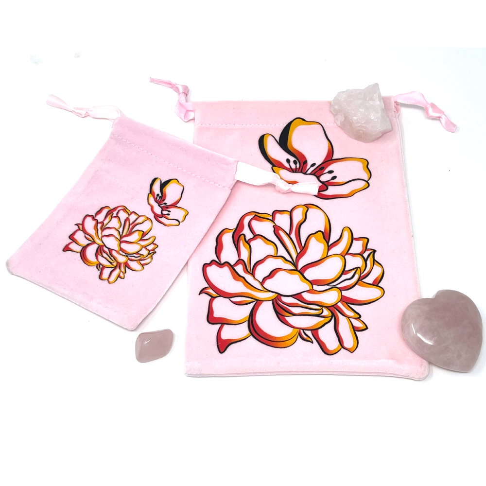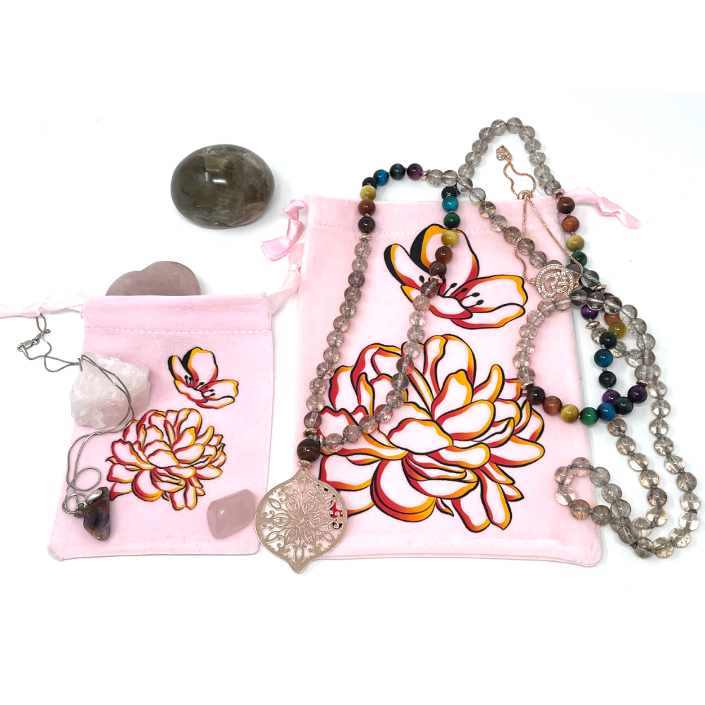 Showcase your tarot cards, crystals, or jewelry collection in this luxurious pink polyester velvet pouch bag.