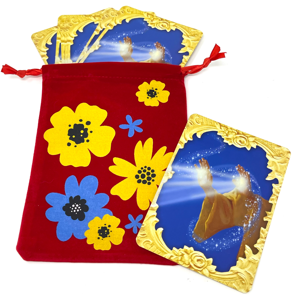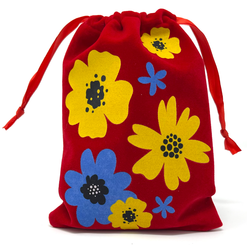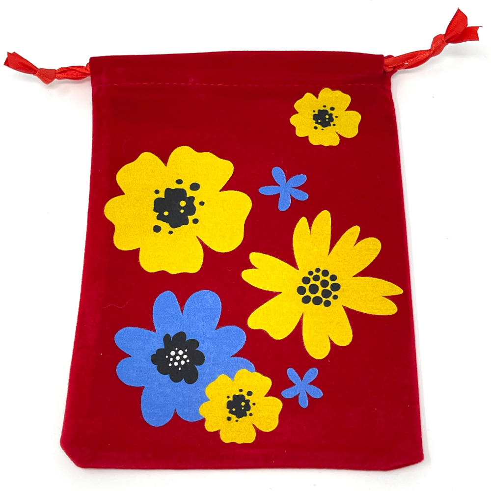 A captivating red polyester velvet pouch bag, DTF printed, it's perfect for stowing away tarot cards, crystals, and other treasured jewelry.