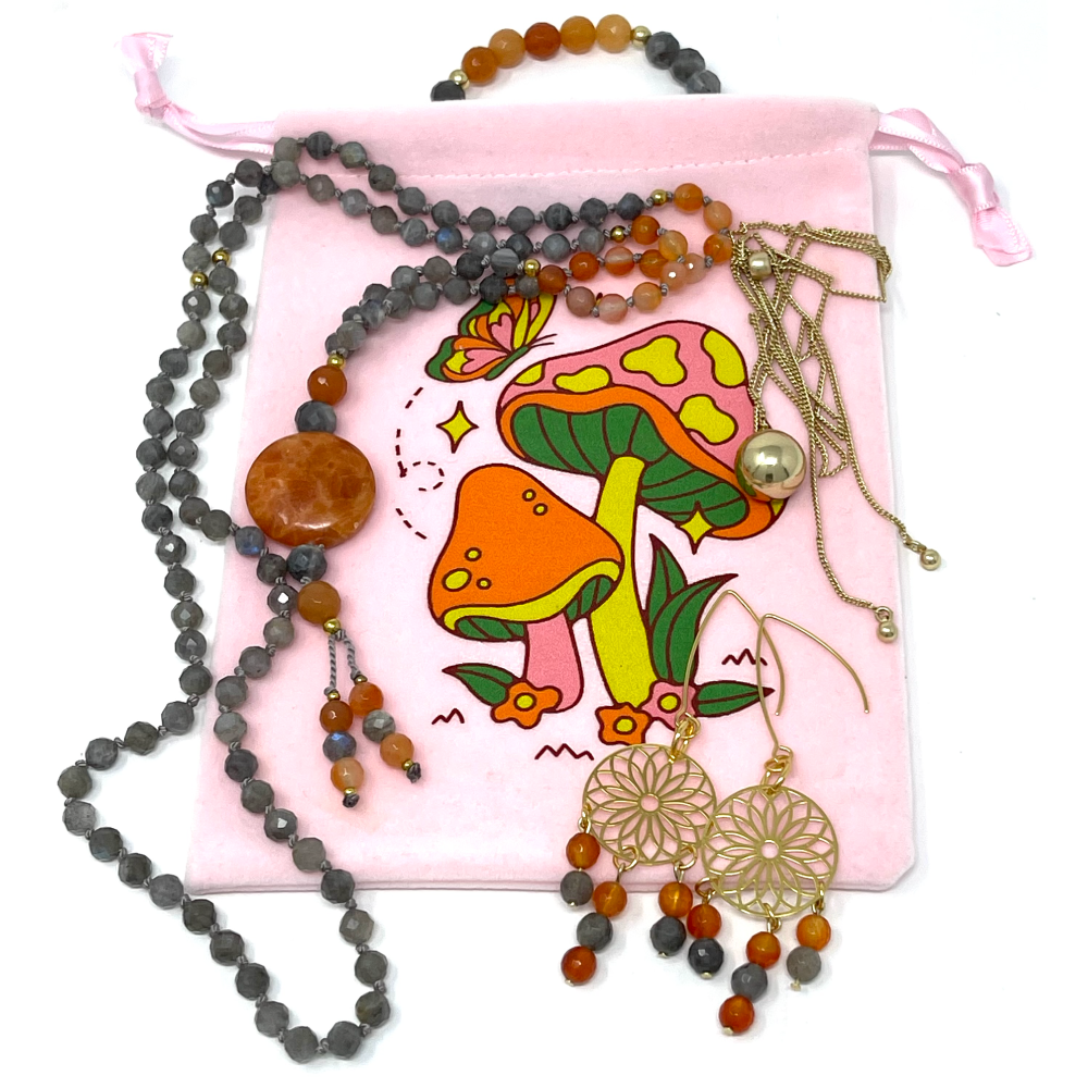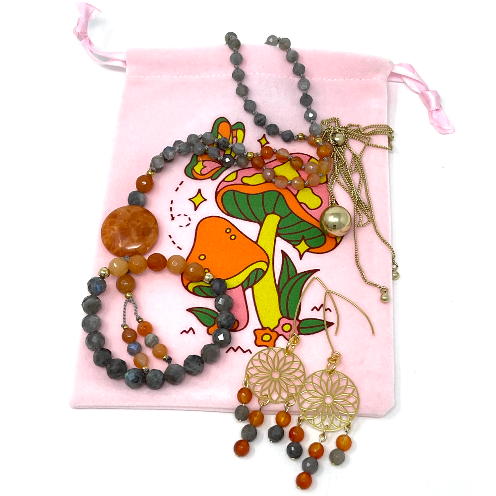 A captivating pink polyester velvet pouch, DTF printed, it's perfect for stowing away tarot cards, crystals, and other treasured jewelry.