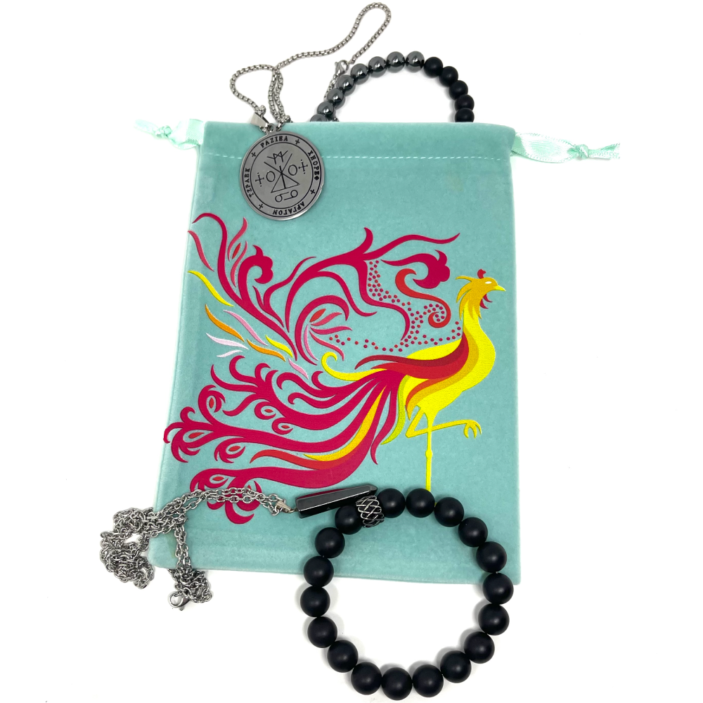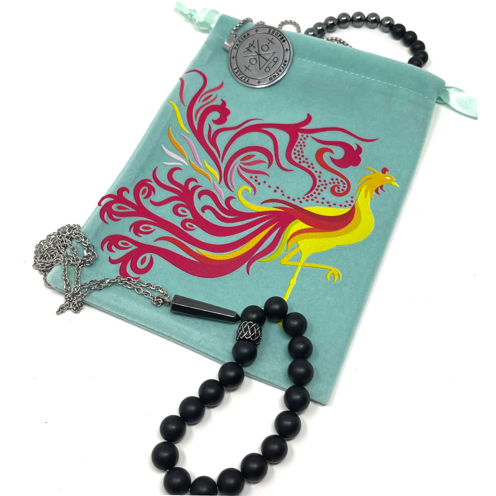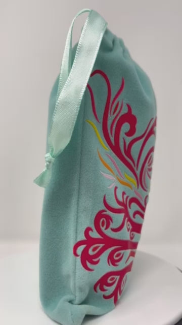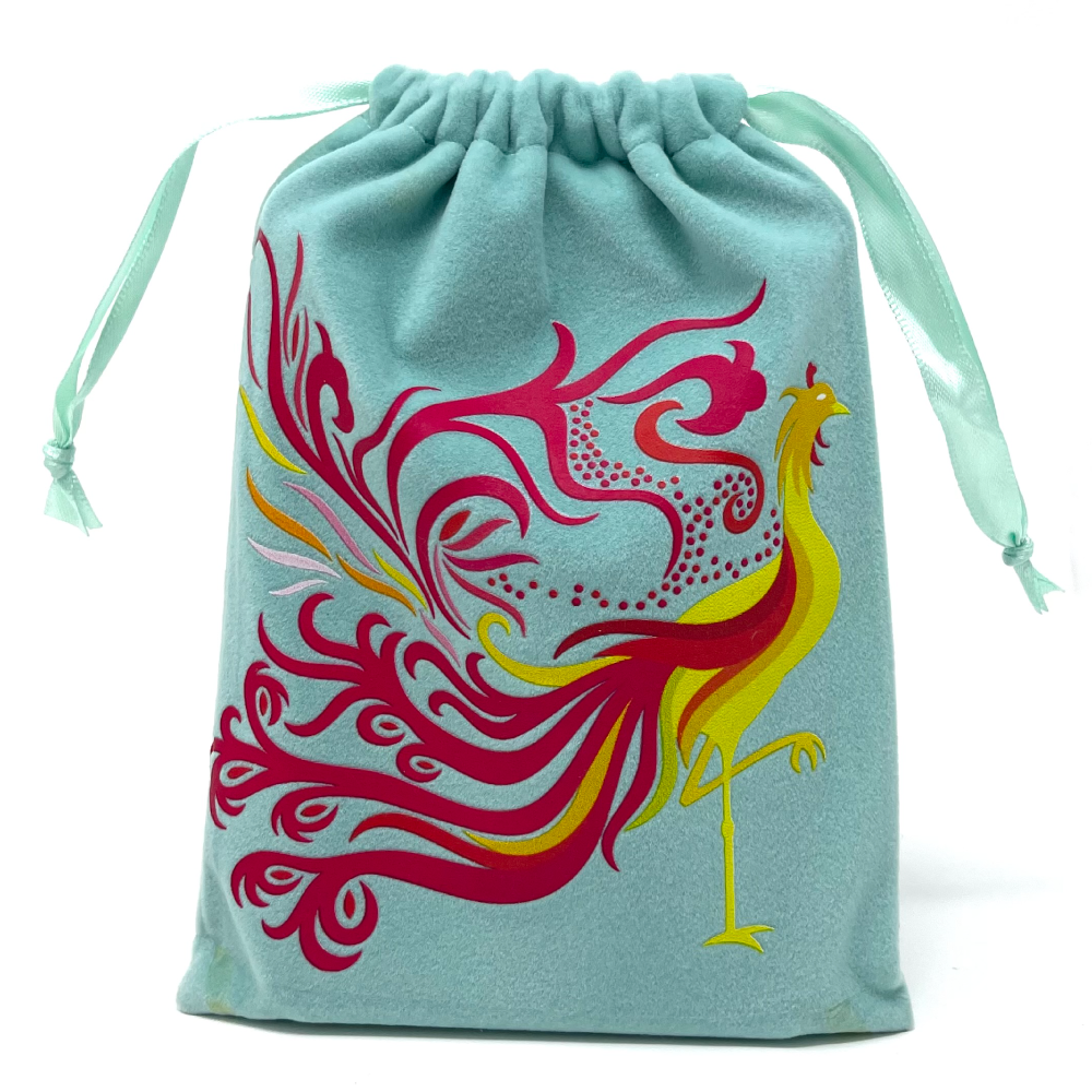 Protect your valuable items with this distinctive Phoenix bird pouch bag (tarot cards, crystals or jewelry). Crafted with green polyester velvet, it's the perfect accessory for travel or everyday use. The DTF printed phoenix is sure to make a stunning statement wherever you go!
